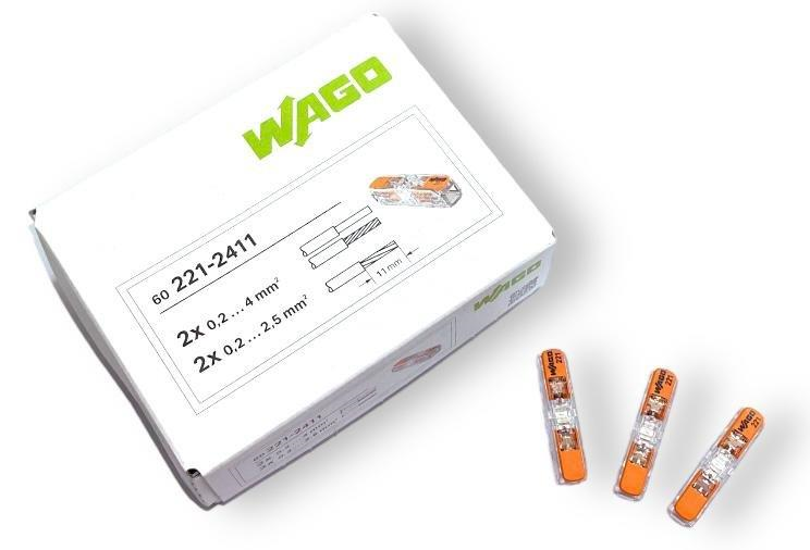 KIT 60 CONECTORES WAGO LEGÍTIMO 221- 2411 - 2 POLOS - ATÉ 4MM²