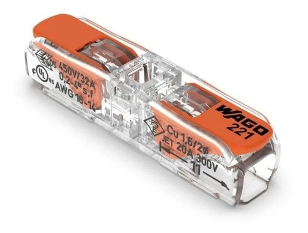 Os conectores Wago são uma solução prática e rápida para conectar fios. Com um sistema de alavanca fácil de usar e uma carcaça transparente, ele oferece segurança e praticidade na conexão. 40% menor que o modelo antigo, é perfeito para instalações mais compactas, garantindo conexões confiáveis e rápidas, mesmo em fios maiores ou de alto consumo. O conector Wago pode ser reutilizado sempre que necessário por uma simples remoção do cabo atual e conexão de outro.