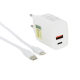 O Carregador Parede com Cabo USB Tipo C X Iphone 1,5 metro branco Comp é utilizado para carregar dispositivos USB na tomada elétrica, entrada 100/240V - 50/60Hz 0,5A e na saída possui dois portas USB de 5V/3.1A.